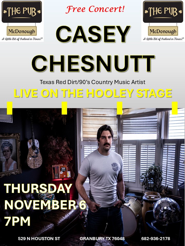 Casey Chesnutt is a proud Marine Corps veteran, dedicated father, and rising country artist carving his own path in the Texas music scene. Son of country legend Mark Chesnutt, Casey grew up surrounded by ‘90s country but found his voice in the raw, gritty sound of Texas Red Dirt influences like Cross Canadian Ragweed and Reckless Kelly. After years of writing, self-releasing music, and touring relentlessly, he signed with Clearwater Records to bring his modern country style to a wider audience. With heartfelt songs and a drive as relentless as the 3,000 miles he travels weekly to see his daughter, Casey is determined to make his mark on country music.