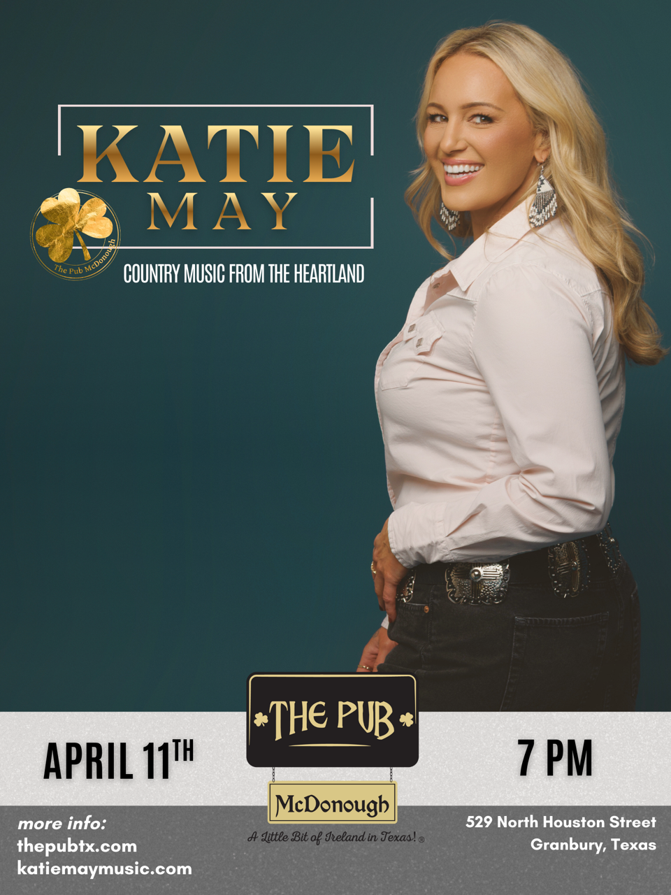 Singer-songwriter Katie May is carving her place in Country music with a feminine, pure voice. Her songs are made for the new era of two-stepping on a lively sawdust dance floor. She blends elements of Classic Country Twang, Top 40 Country, and Country Rock.